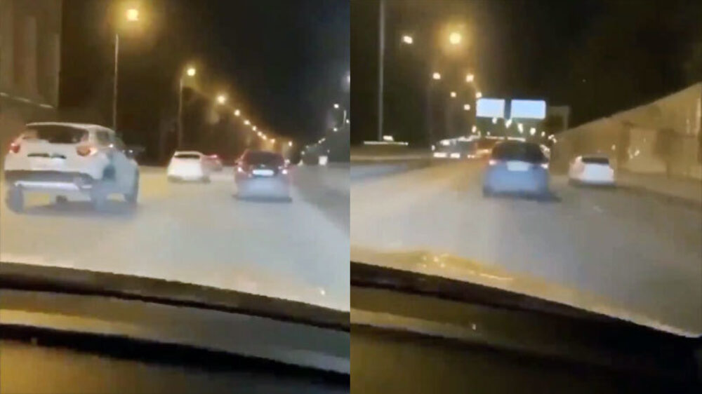 Idioot racet door het verkeer alsof het een computerspelletje is