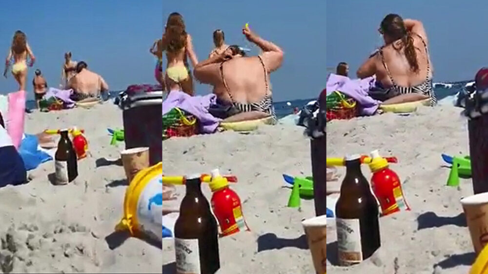 Volslanke tante heeft een geweldige lifehack om d'r rug in te smeren