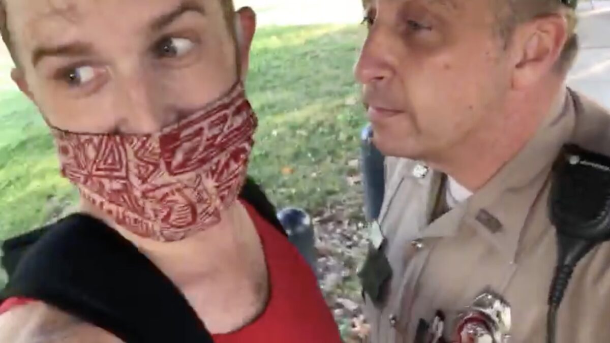 Agent Harvey Briggs wil niet gefilmd worden en trekt mondkapje van gezicht