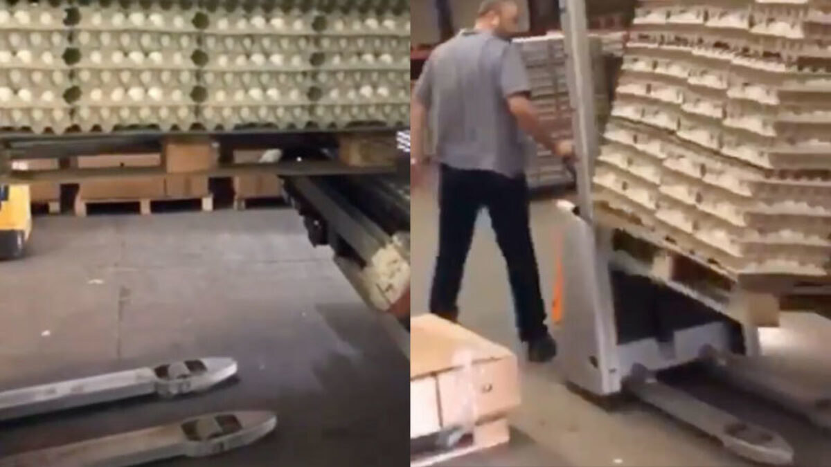 Zijn eerste dag in de eierfabriek was niet echt succesvol Fails