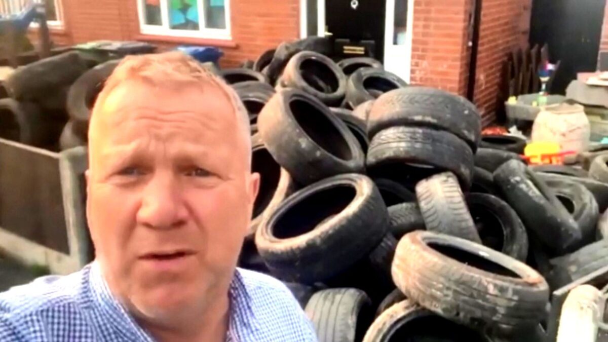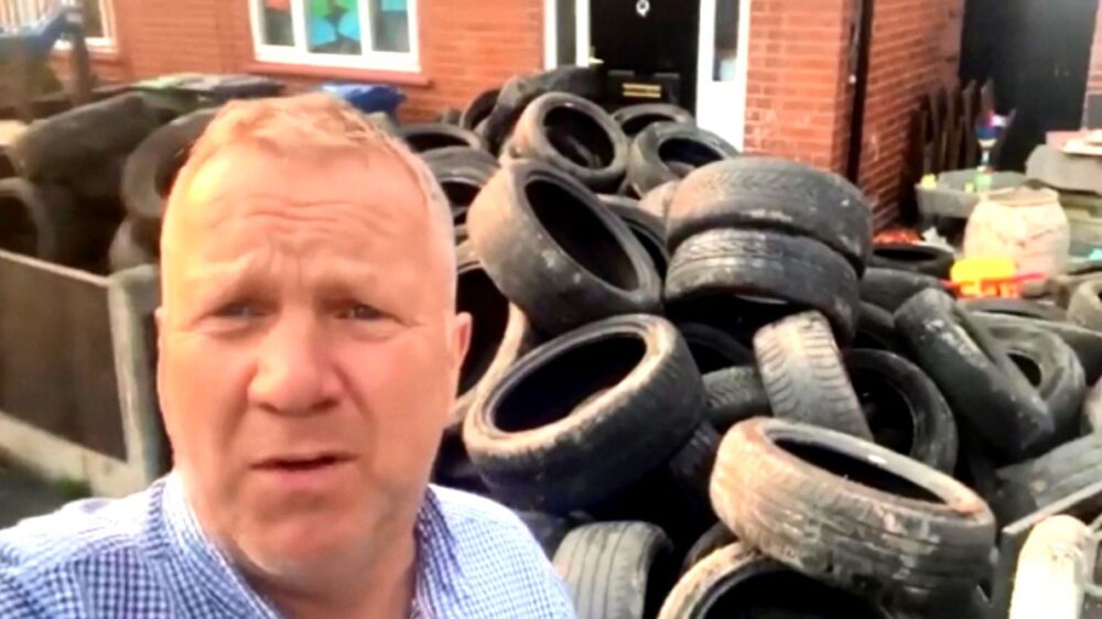 Een of ander klootzakje heeft ruim 400 autobanden op het landgoed van de 56-jarige boer Stuart Baldwin uit het Engelse Wigan gedumpt. Gelukkig wist hij het adres te achterhalen van de rechtmatige eigenaar en is eindbaas Stuart niet te beroerd om ze even terug te brengen.