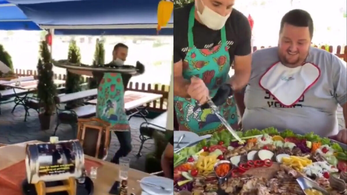 Mag ik van u 6 hamburgers, 5 braadworsten, een bult kip, een lading ander willekeurig vlees en anderhalf kilo patat? Oh, en doe er maar wat salade en een colaatje light bij, ik moet op mijn dieet letten.