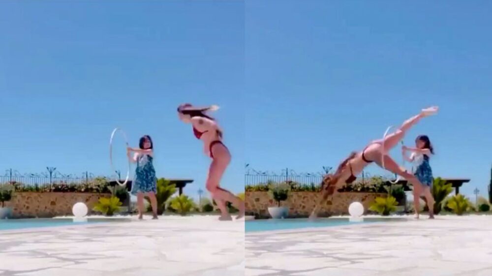 Hou jij deze hoepel even voor mama vast zodat mijn bikini en ik naar de vele views en likes kunnen springen. Wel goed vasthouden hè?