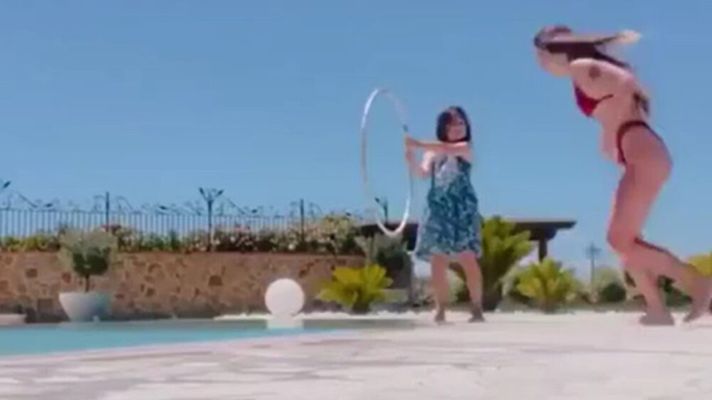 Hou jij deze hoepel even voor mama vast zodat mijn bikini en ik naar de vele views en likes kunnen springen. Wel goed vasthouden hè?