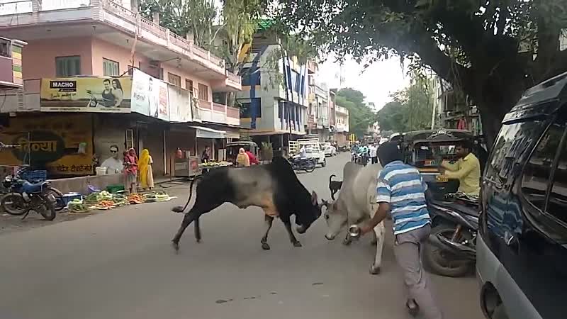 Een stierengevecht in India is eigenlijk gewoon een ouderwets straatgevecht, maar dan met stieren.