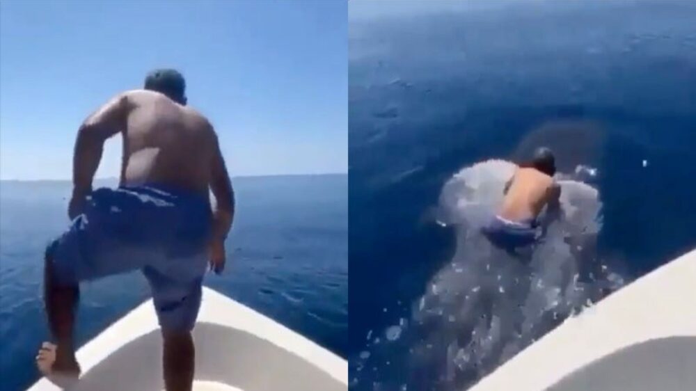 Ondertussen in Saoedi-Arabië: man maakt ontspannen ritje op walvishaai