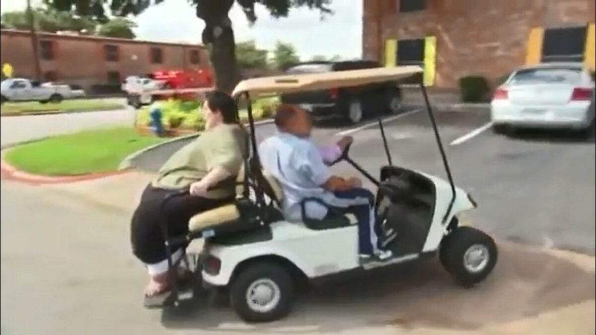 Obesitas Trom valt uit een golfkar en komt niet meer overeind TV
