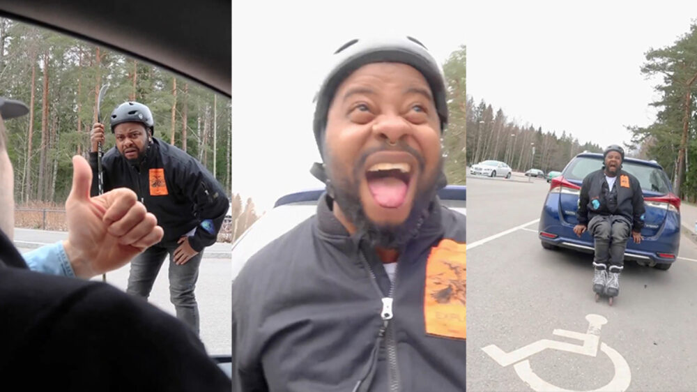 Skater had niet verwacht dat zijn lift op de trekhaak zo hobbelig zou zijn