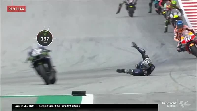 Tijdens de MotoGP van Oostenrijk (oké, Styrië) kreeg Maverick Vinales de schrik van zijn leven toen hij er met 230 km/u achterkwam dat zijn remmen het niet deden. Echt heel veel keus heb je dan niet, maar toch, met die snelheid van je fiets springen is wel een heftige beslissing...