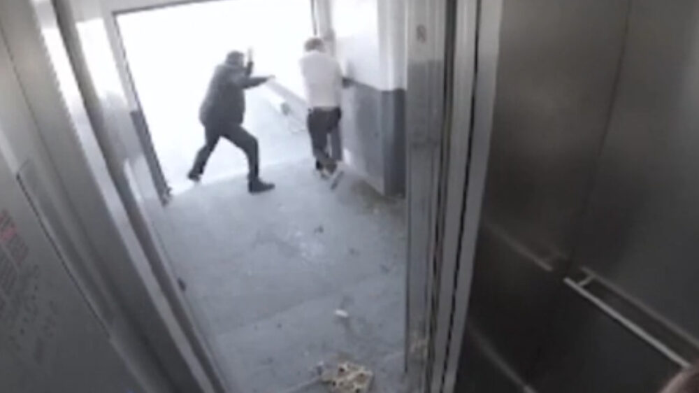 Gisteren knalde storm Francis over Nederland, met aardig wat schade als gevolg. Ook in Engeland waaide het stevig, iets waar deze twee mannen vrij snel achter kwamen toen ze de lift uitstapten.