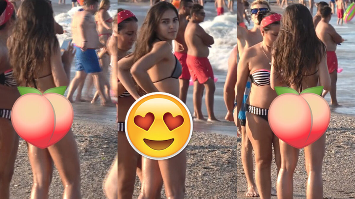 Deze viespeuk ligt op het strand stiekem zeer appetijtelijke billen te filmen. Gelukkig krijgt ze het in de gaten… Oh volgens mij vindt ze het prima. Oké, dan kijken wij nog even verder.