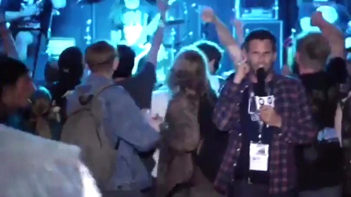 "Voor ons verslag van het concert gaan we nu over naar Steve, die per ongeluk midden in de moshpit is gaan staan." Niet nieuw, wel erg grappig.