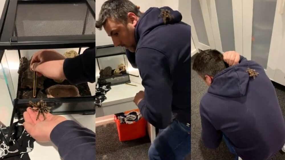 De volgende keer laat hij zijn vogelspin gewoon in het terrarium zitten Fun