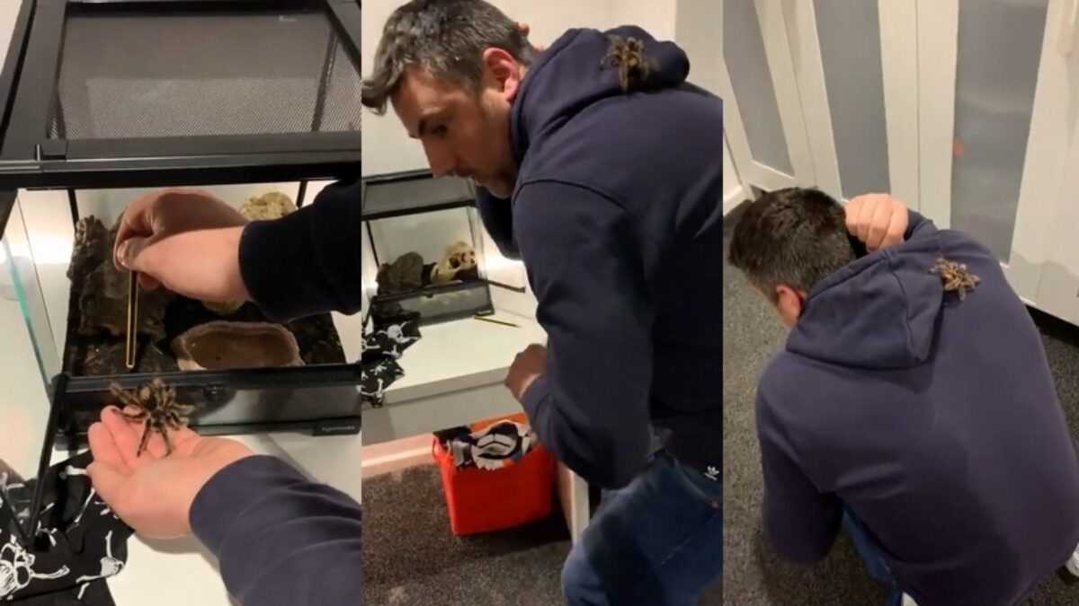De volgende keer laat hij zijn vogelspin gewoon in het terrarium zitten Fun