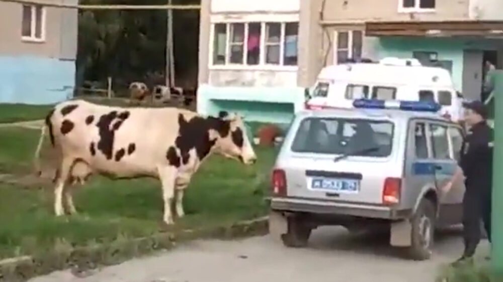 Koeien laten zich door Russische agent niet zomaar wegjagen Fun