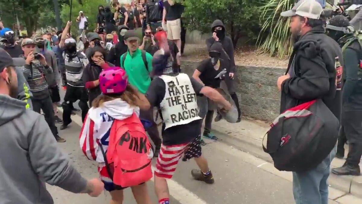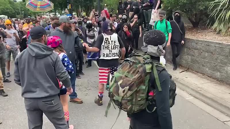 Klein meisje vanwege Amerikaanse kleding belaagd door Antifa-tuig