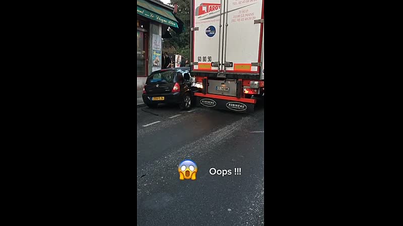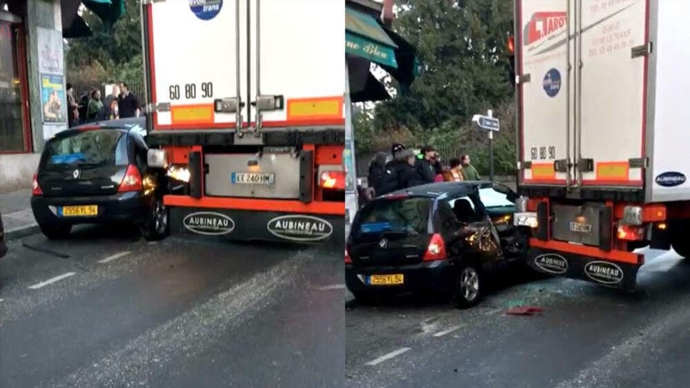 Franse vrachtwagenchauffeur heeft geen medelijden met geparkeerde auto