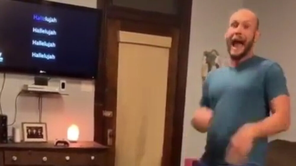 Vrouw laat echtgenoot zich het apezuur schrikken tijdens zangsessie