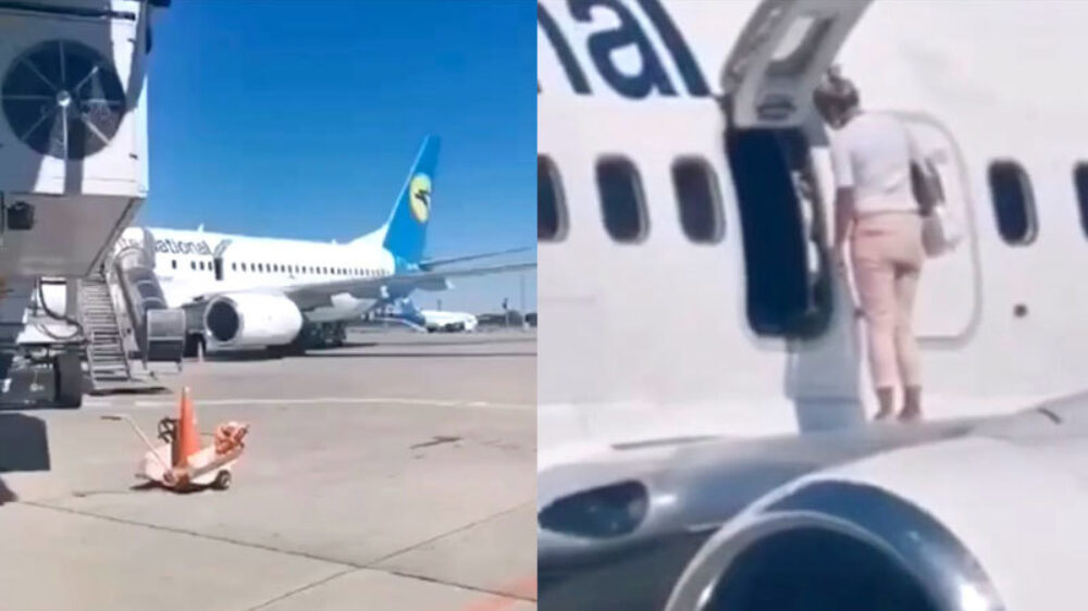 Echt vervelend natuurlijk als je al in het vliegtuig zit maar dat kreng wil niet opstijgen. Deze Oekraïense moeder dacht hier precies hetzelfde over en omdat ze het ondertussen behoorlijk warm had gekregen, besloot ze de nooddeur te openen en op d'r dooie gemakje naar buiten te stappen om wat af te koelen op de vleugel van het vliegtuig.