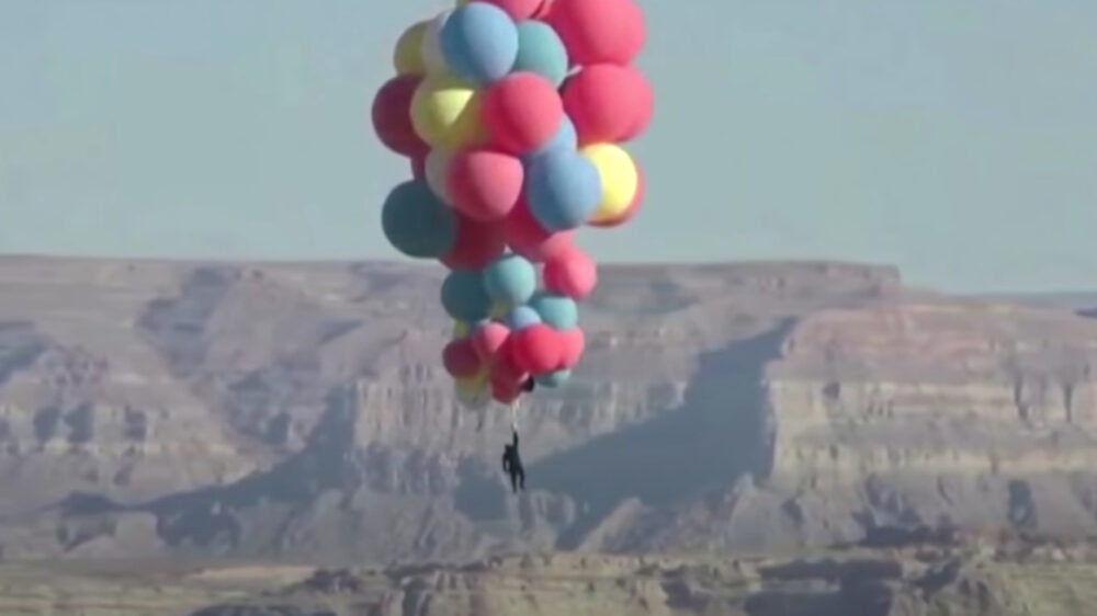 David Blaine gaat aan een lading ballonnen ruim 6 kilometer de lucht in