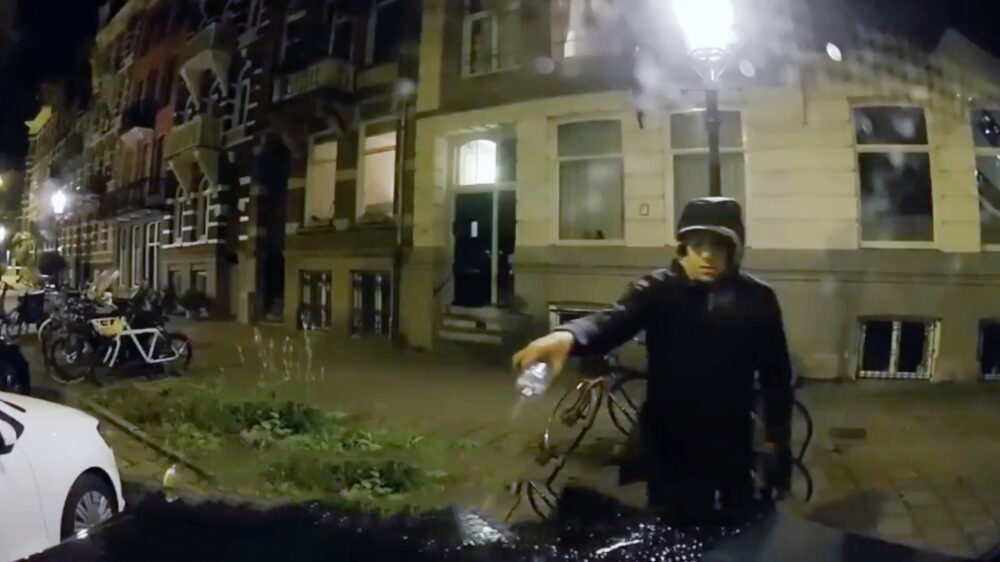 Mooi, eindelijk eens beelden van een heterdaadje die niet met een aardappel zijn opgenomen. We schakelen over naar 020 waar iemand zijn fles leegkiepert over een kneitertjedure Mercedes G-klasse en deze vervolgens in lichterlaaie zet. Eigendommen van anderen moedwillig vernielen is per definitie triest en ook de politie is benieuwd naar de motivatie van deze ~ 18-jarige jongeman.