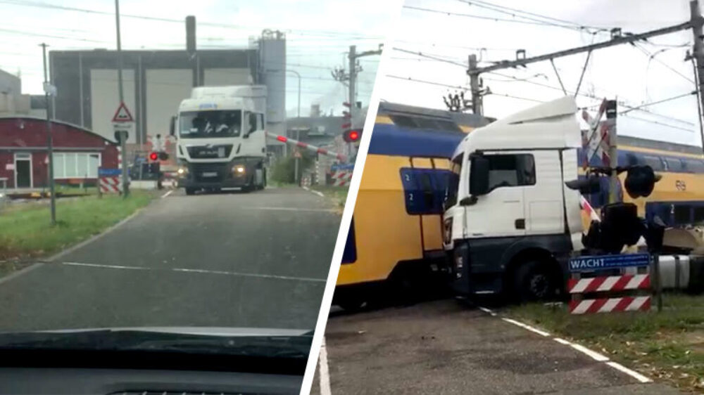 Intercity boort zich in vrachtwagen op spoorwegovergang in Roermond