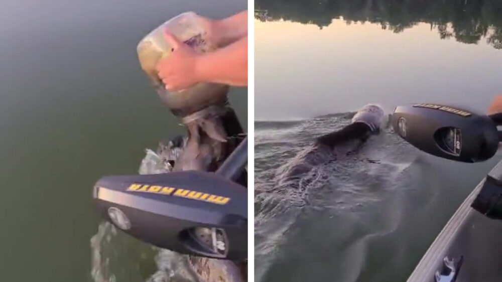 Niet alle helden dragen een cape, en soms zitten ze zelfs in een bootje. Deze bazen waren namelijk rustig een stukje aan het varen toen ze een beer spotten met een fles om zijn kop. Niet heel handig natuurlijk, maar ook nog eens levensbedreigend want zodra die fles volloopt met water is het natuurlijk vrij snel afgelopen. Wasbeer.