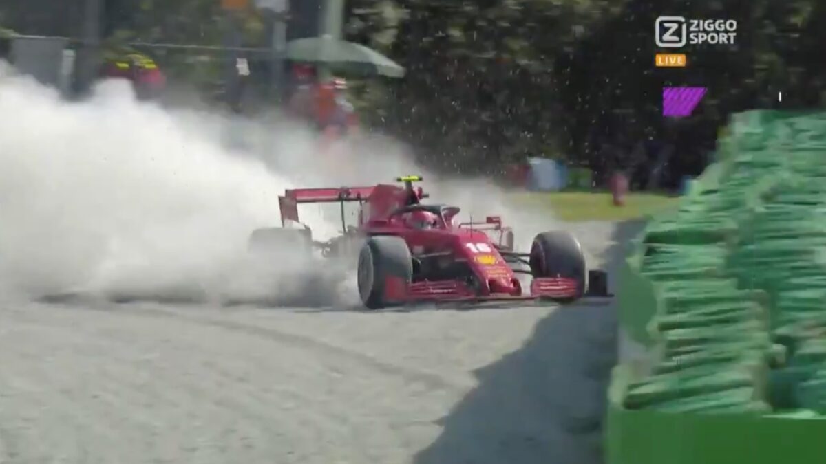 Race stilgelegd: megaklapper van Leclerc die hard in de banden rijdt