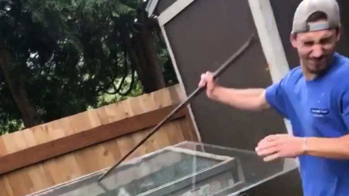Het slopen van de glazen plaat verliep niet volgens planning Fails