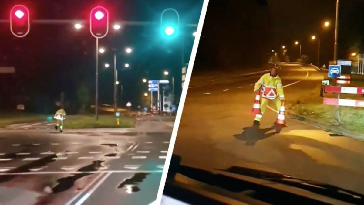 Verkeersregelaar Jeffrey rent zich een ongeluk voor de ambulance