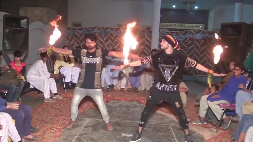 Ziet er natuurlijk supervet uit, een enthousiaste dans terwijl je half in de fik staat, maar laat dat in het vervolg maar gewoon over aan de professionals. Voordat je het weet ben je op weg naar de Indiase Beverwijk.