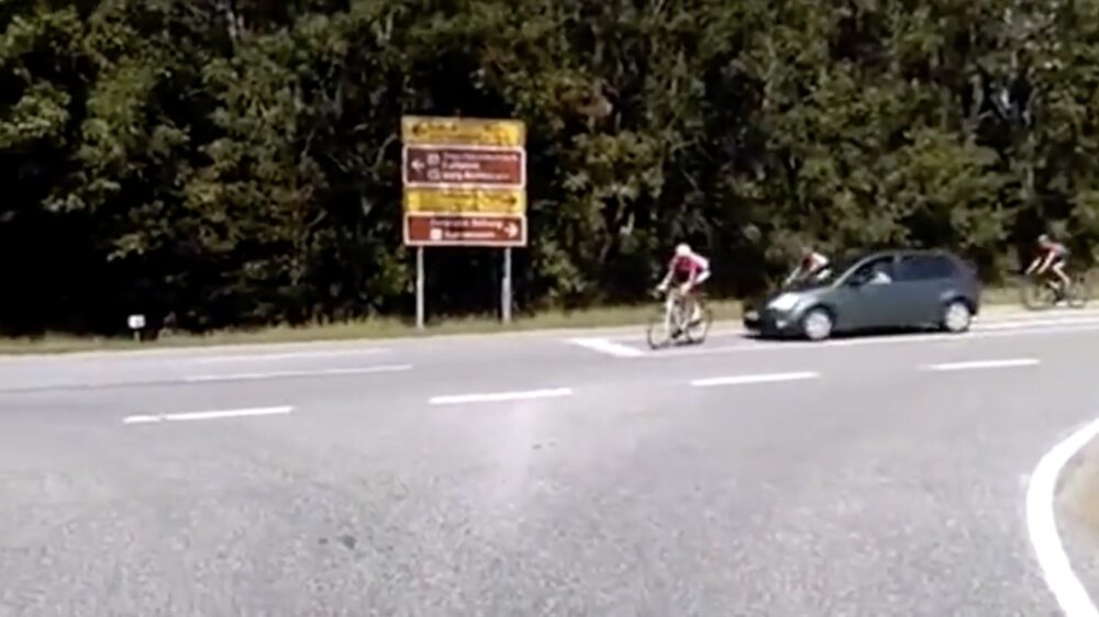 Wielrenner met engeltje op zijn schouder wordt geschept door maniak in auto