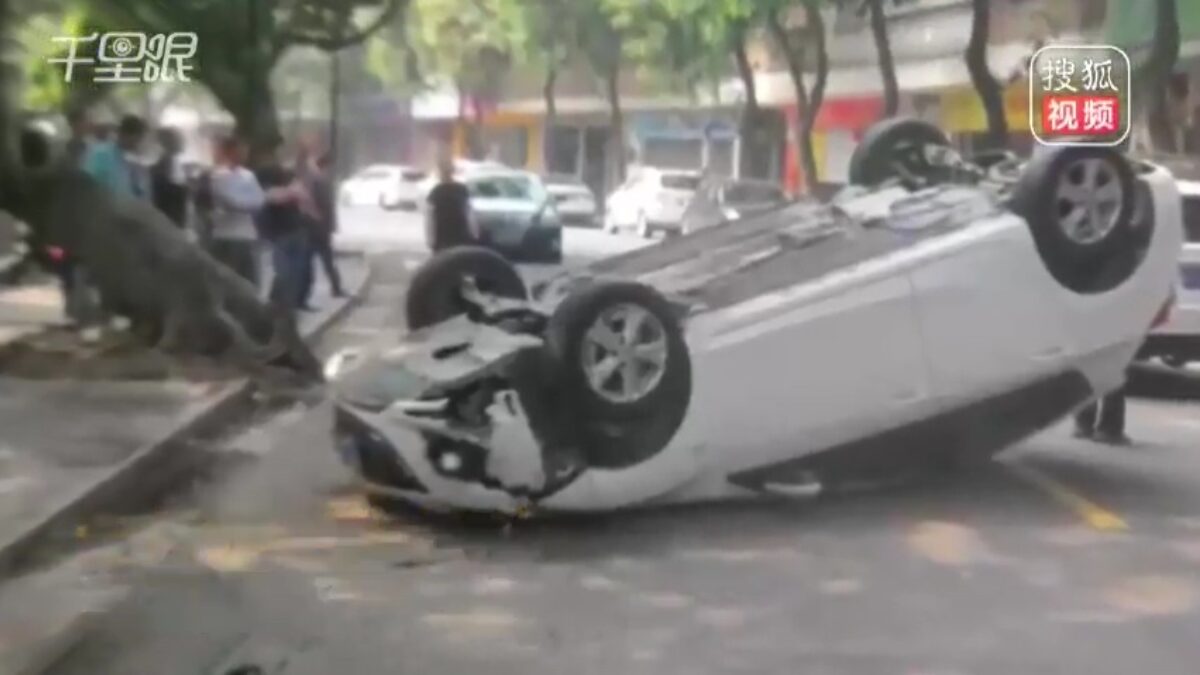 Bestuurder flipt auto op z'n dak na raken van uitstekende boomwortel Fails