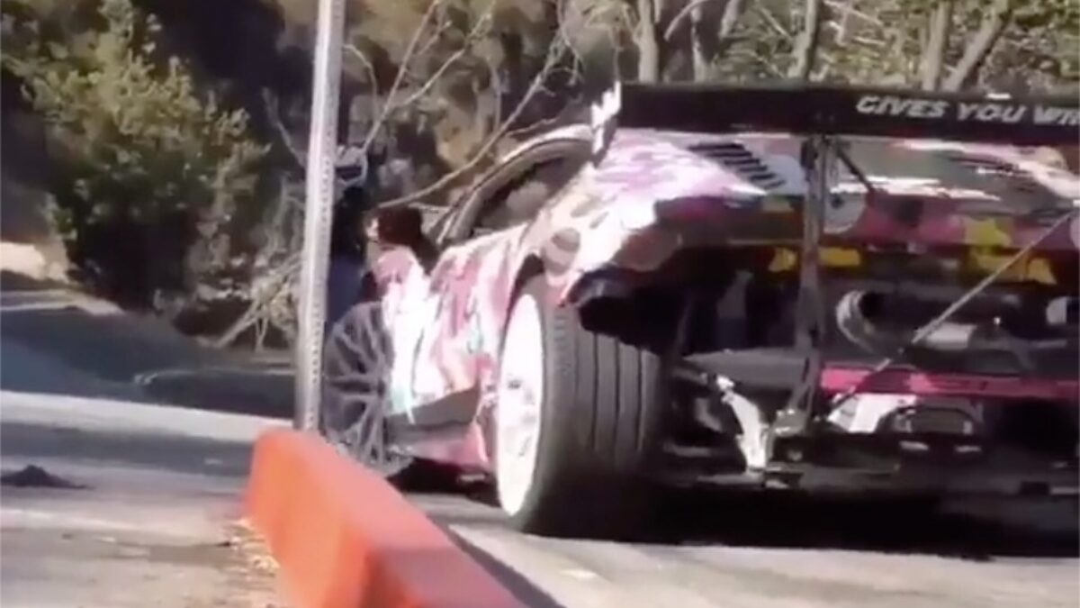 Idioot in Lamborghini schept nèt geen aanstormende motorrijder Bizar