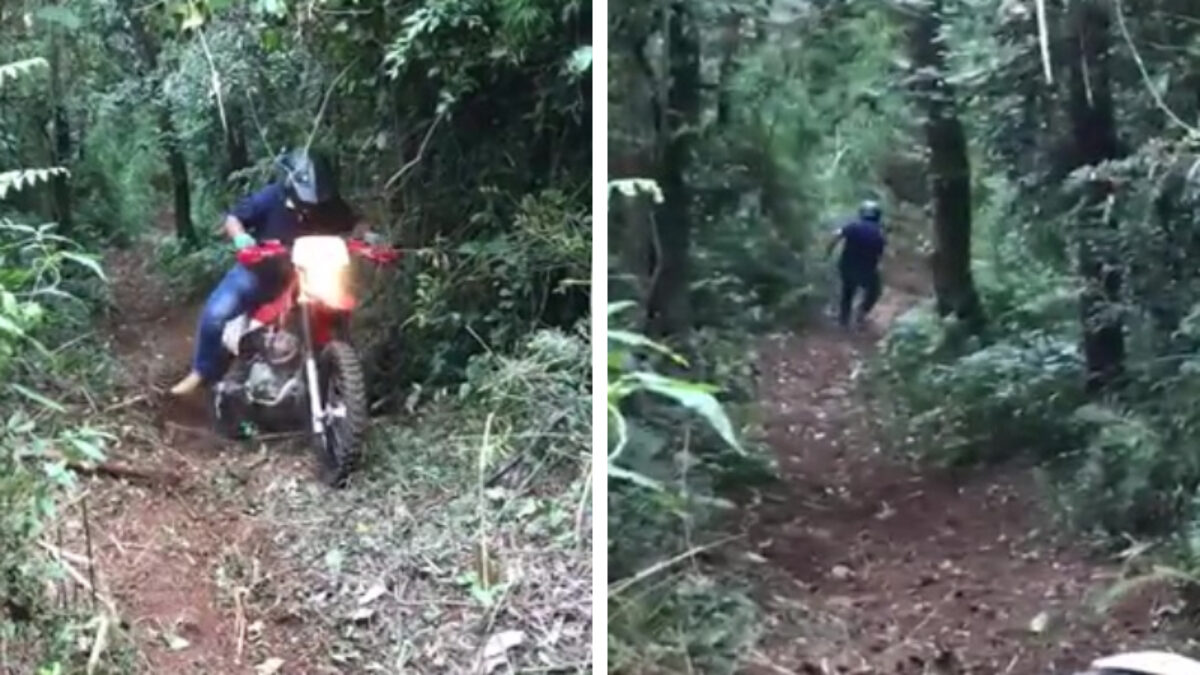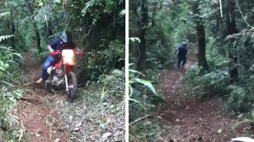 Iedereen weet wel wat zwaartekracht inhoudt, maar soms trekt deze trut net even iets harder dan anders. Ook niet echt de meest handige plek om te falen op je crossmotor.