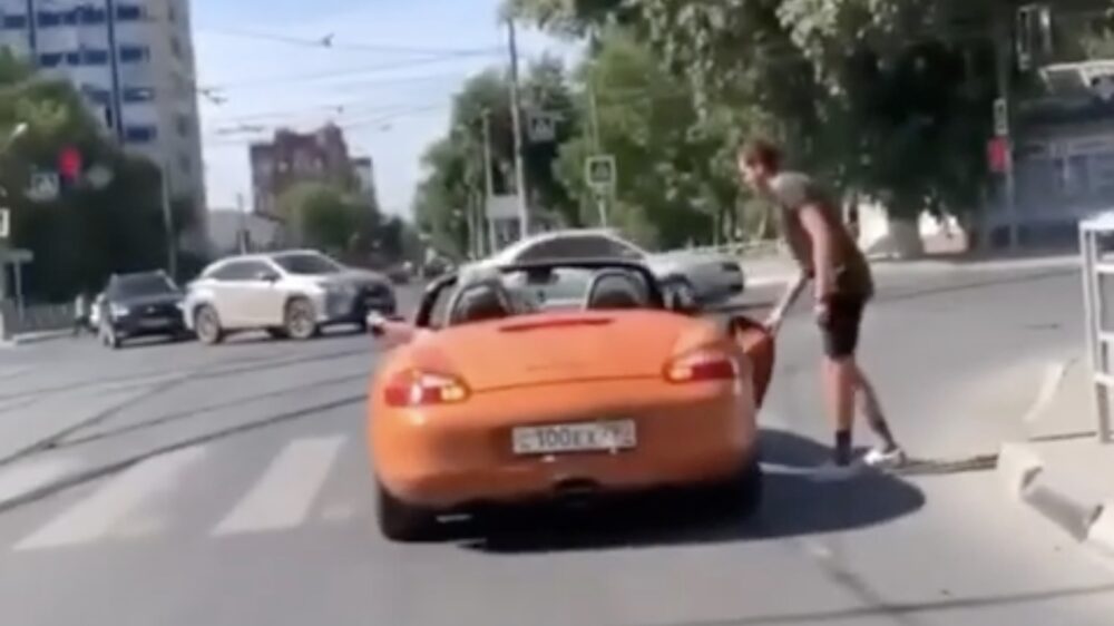 Het is natuurlijk niet de eerste keer dat we dit soort acties zien, maar het blijft mooi om bij zo'n zebrapadhufter dwars door zijn auto te lopen. Met je open bloesje...