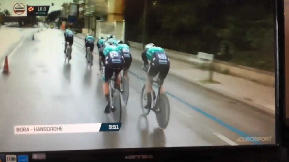 Voetganger heeft schijt aan wielerwedstrijd en steekt gewoon over