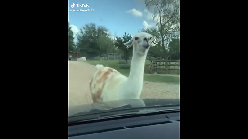 Vrouw wordt vol in haar gezicht gekwat door een lama Fun