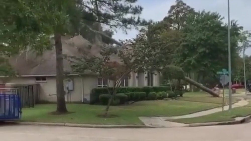 Een boom naar beneden halen is een tricky klusje, zeker als de boom in kwestie vlak bij huizen staat. Gaat in dit geval dan ook niet helemaal lekker, en de houthakker is zo te horen niet blij. Understatement.