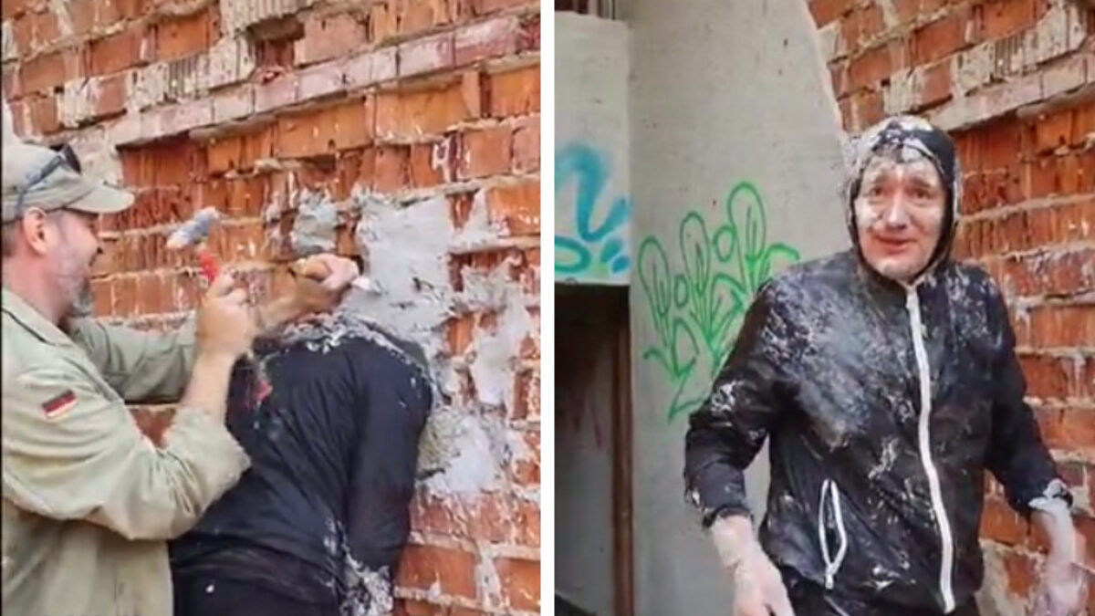 Mafkees heeft zijn hoofd in de muur laten metselen Gekkies