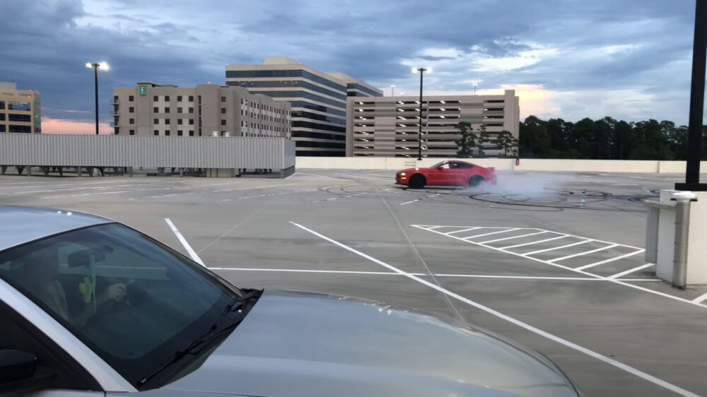 Flapdrol slaagt erin om zijn Mustang tegen een paal te parkeren