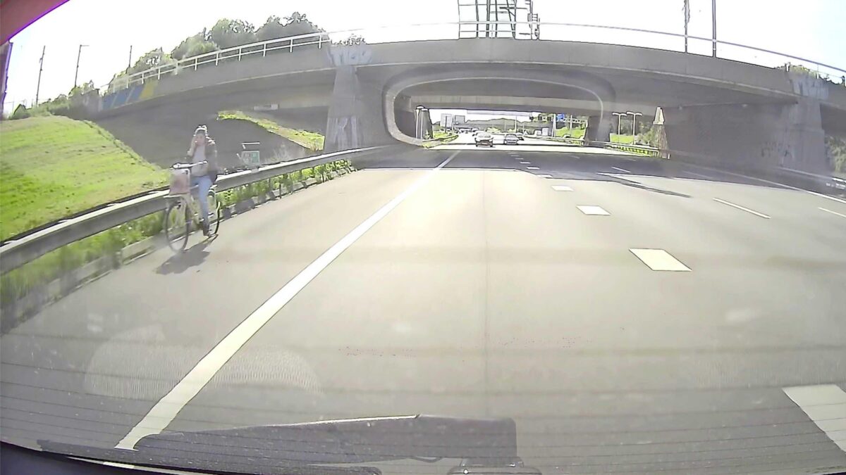Iedereen mist natuurlijk wel eens een afslagje, maar als je hierdoor met je fiets op de A4 belandt dan zou je jezelf toch even achter de oren moeten krabben. Deze dame had er klaarblijkelijk niet zoveel problemen mee en reed al bellend via de vluchtstrook verder.