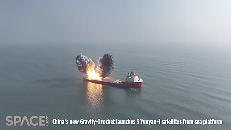 De lancering van de Chinese Gravity 1-raket vanaf een zeeplatform