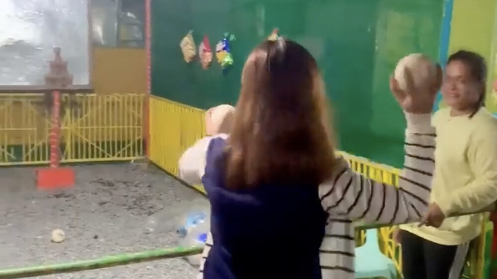 Cameraman ietwat afgeleid tijdens het filmen van een arrestatie