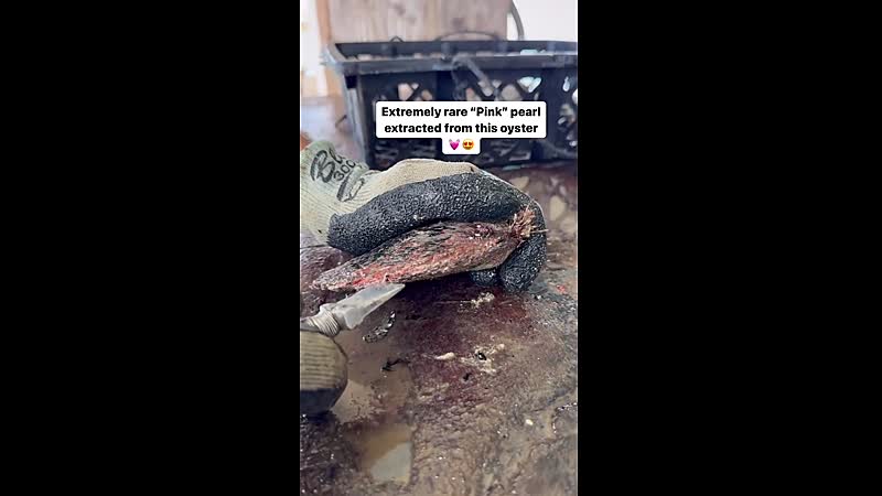 Een roze parel uit een oester trekken