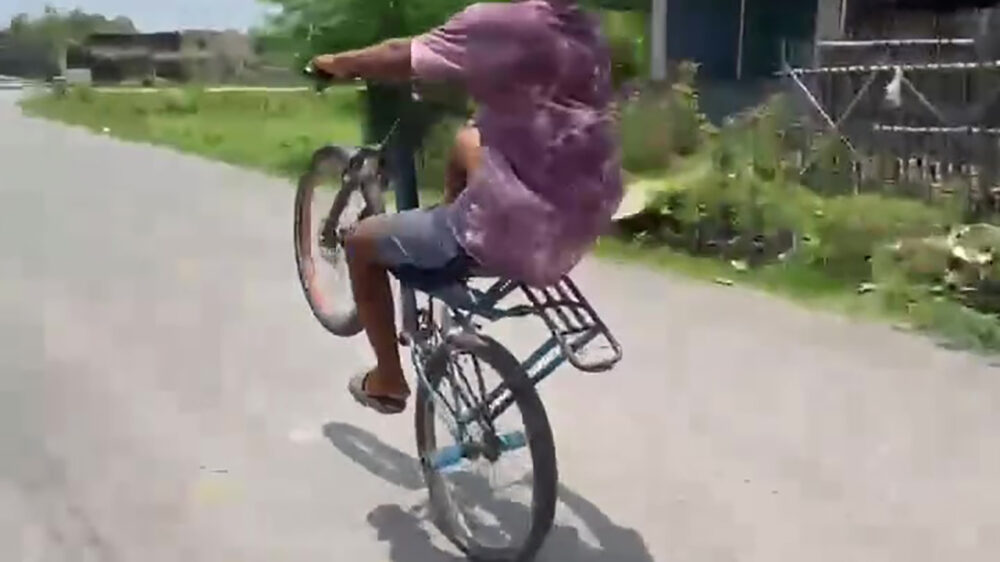 Fiets heeft het helemaal gehad met zijn gewheelie!