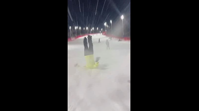 Gevallen skiër glijdt collega hard onderuit