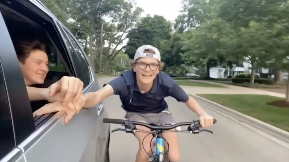 Met je fiets aan een auto hangen is áltijd een twijfelachtig idee