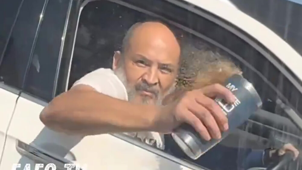 Roadrager krijgt bakkie pleur in zijn eigen gezicht