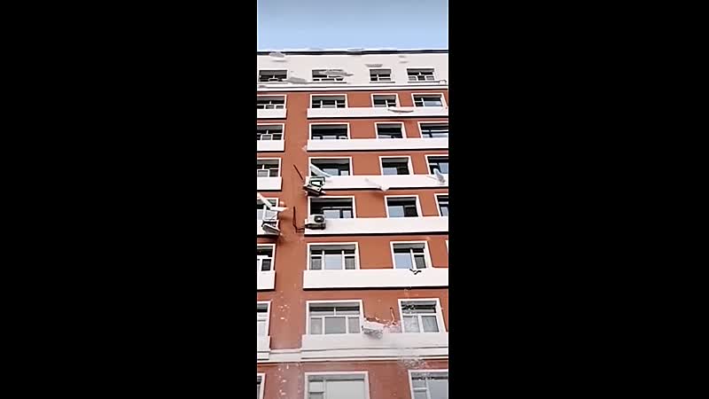 Vallende sneeuw sloopt airco's die aan de muur hangen